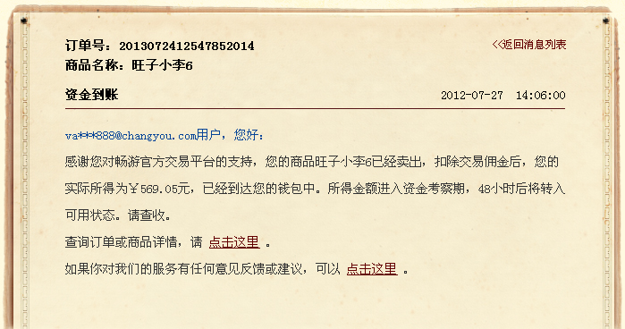 B.商品货款将存入您的畅易阁钱包中,资金进入为期两天的考察期(考察期的资金为不可用资金,不可使用或提现。)